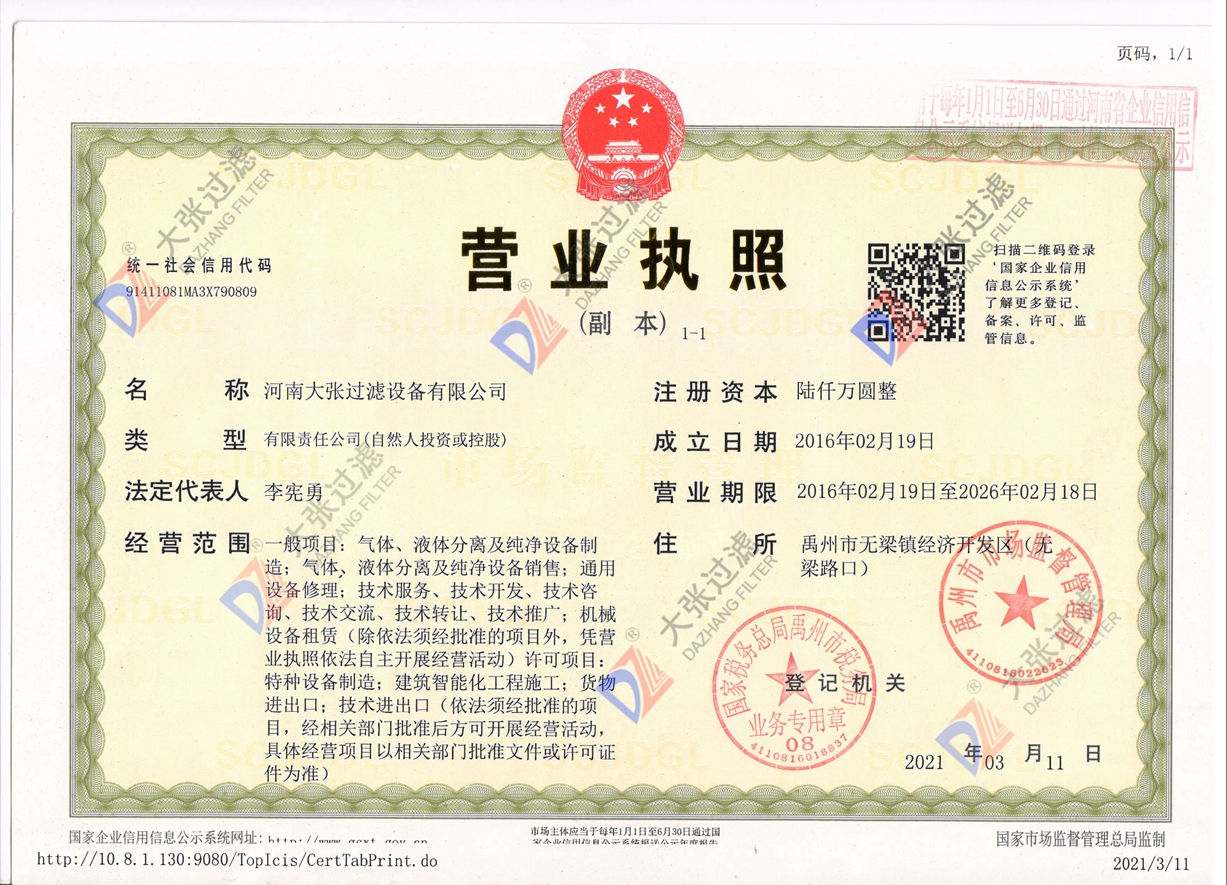 2020年9月9日——河南大張過濾設(shè)備有限公司榮獲“高新技術(shù)企業(yè)”證書