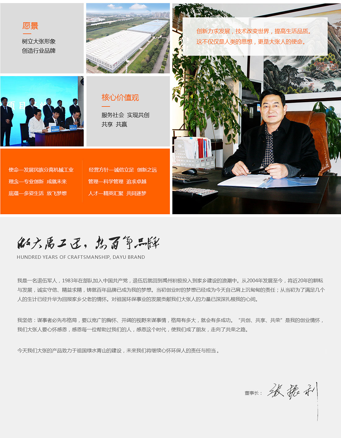 河南大張自成立以來,堅持以質量求生存、以信譽求發展,先后通過了質量管理體系、環境管理體系、職業健康安全管理體系及知識產權管理體系的認證,河南大張及關聯公司先后獲得了“國家級高新技術企業”、“國家級第三批專精特新小巨人企業”、“國家級兩化融合管理體系評定證書”“河南省技術創新示范企業”、“河南省節能減排科技創新示范企業”、“河南省優秀科技型企業”、“河南省文明誠信企業”、“河南省名牌產品”“河南省工業設計中心”“許昌市市長質量獎提名獎”等稱號。公司始終堅持創新力求發展,技術改變世界,取得令人矚目的成果。2013年研發的“免加工密封式方形聚丙烯濾板”打破了中國市場被歐洲壟斷的局面;2015年成立的“河南省新型固液分離裝備工程技術研究中心”,是河南省一家從事固液分離裝備技術開發和應用的專業機構;2017年成立的“河南省企業技術中心”證實了公司科技創新的實力和水平,2018年“高分子隔膜濾板智能自動化混料體系研發與產業化”、2019年“環保行業專用壓濾機的濾板關鍵技術研發及產業化”相繼被列入許昌市重大科技專項項目;2020年公司董事長張振利榮獲“全國優秀農民工”稱號。該年度公司被河南省科技廳認定為“河南省高分子濾板先進材料工程技術研究中心”,參與制定壓濾機方面的團標3件,修訂國家標準1件。其相關技術在國內處于優勢。2021年公司被河南省科技廳評為“河南省瞪羚企業”榮譽稱號。隨著實力的不斷增強,公司成為中國通用機械工業協會分離機械分會副理事長單位,同時為滿足市場上對壓濾機產品的需求。